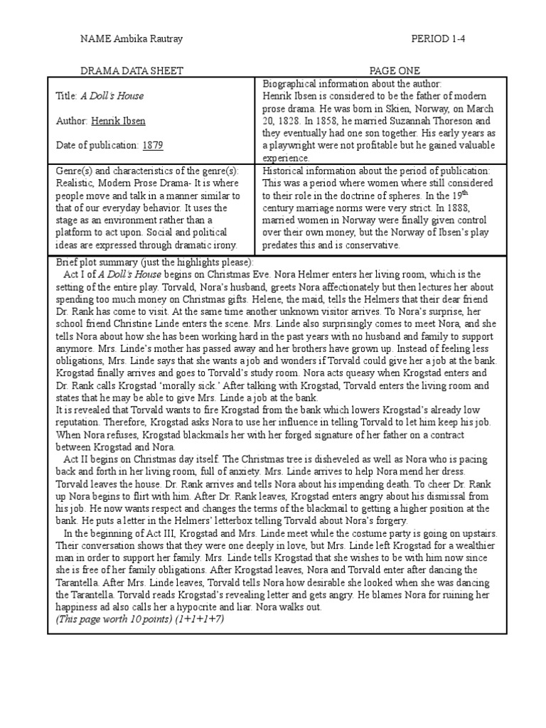 Doc A Dolls House By Henrik Ibsen Salman Rehman Shahbaz Academia Edu